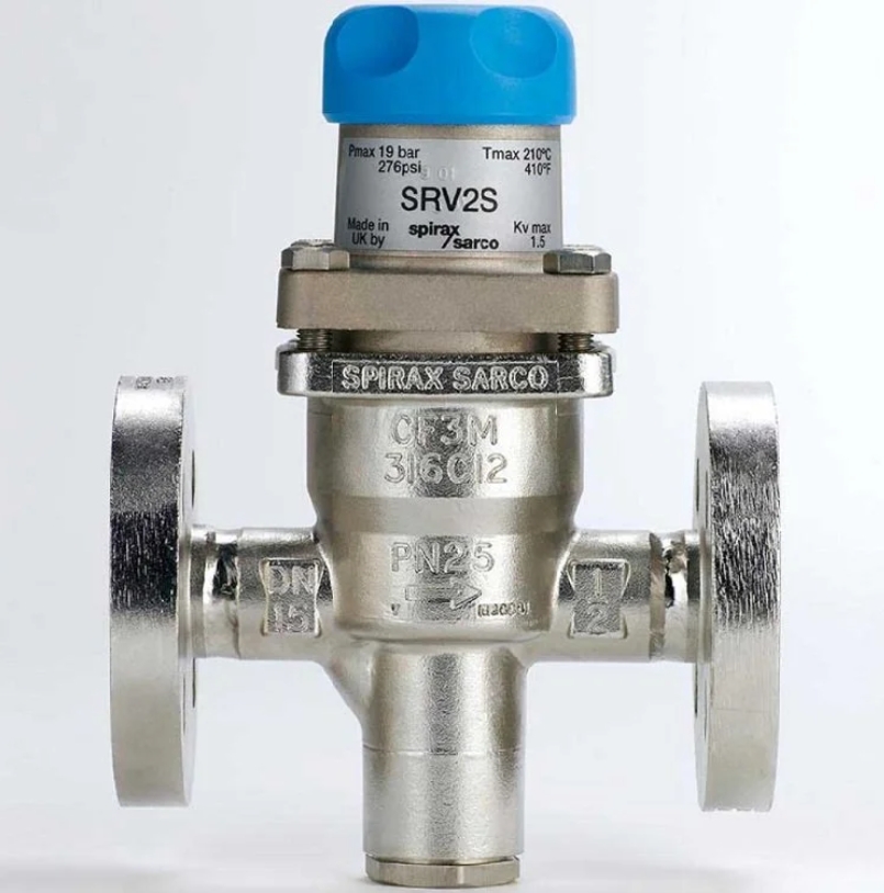SRV2S不锈钢直接作用式减压阀,结构紧凑,适用于蒸汽或气体系统如压缩空气。所有与介质接触部件为316不锈钢。